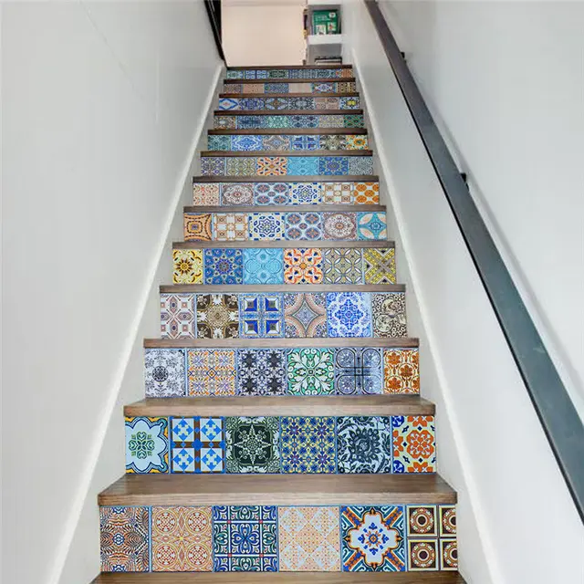 13 Pieces Set Diy 3d Stiker Ubin Keramik Pola Bunga Geometris Tangga