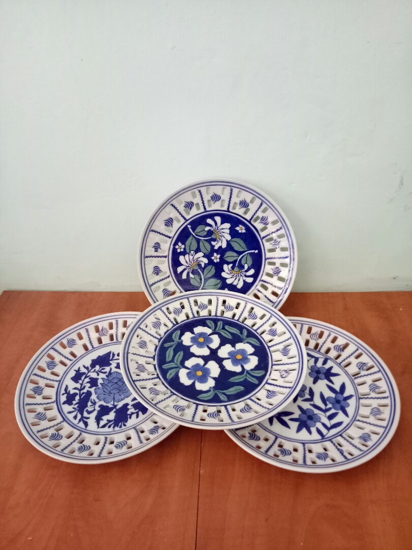 Set Piring Antik Hias Keramik Dinding Motif Bunga Antiques
