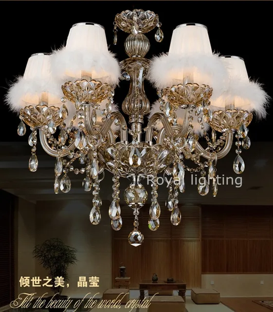 France Led Kuning Lampu Kristal Lampu Dengan Nuansa Kain Swan Lilin