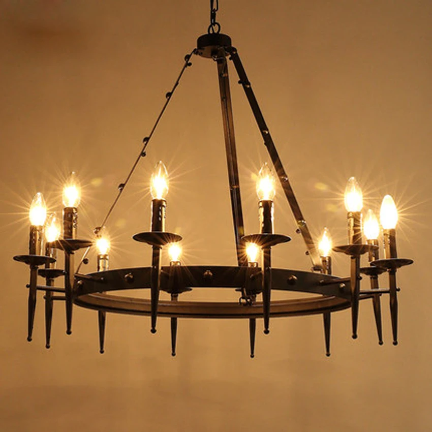 Amerika Negara Antik Loteng Industri Chandelier Lilin Besi Kreatif