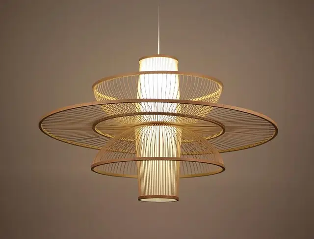 Willlustr Suspensi Cahaya Lampu Gantung Bambu Kayu Handmade