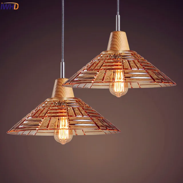 Iwhd Nordic Kayu Led Liontin Cahaya Ruang Tamu Kaca Edison Loft