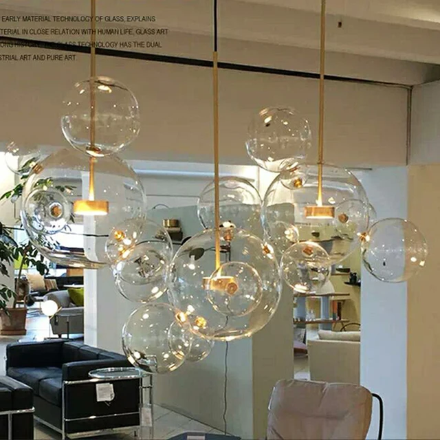 Kaca Bening Bola Ruang Tamu Lampu Gantung Gaya Art Deco Lampu