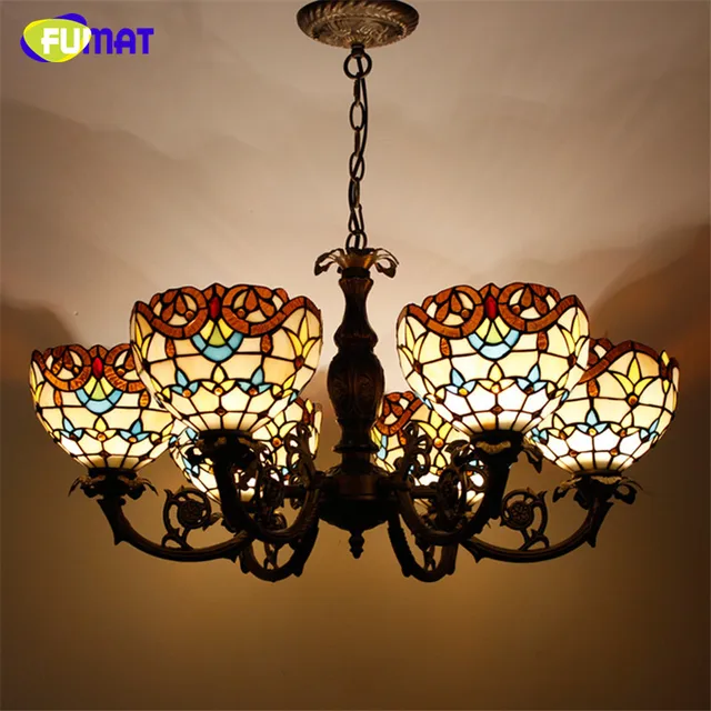 ᐊfumat Stained Glass Chandelier Eropa Vintage Kaca Suspensi Cahaya