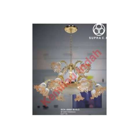 Jual Lampu Gantung Cabang 6 Bhn Kaca Kristal Fitting E14 X 6