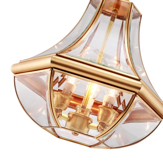 Tembaga Tradisional Tubuh Led Pendant Light Dia 35cm 3 Lampu Buatan