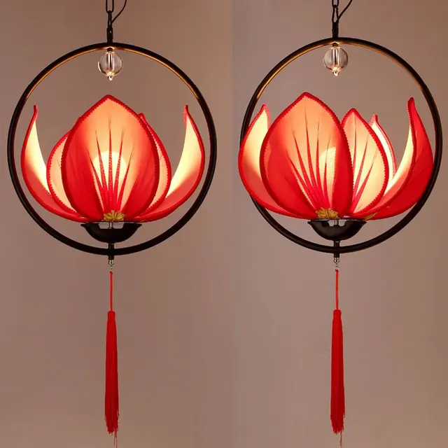Cina Lotus Kain Restoran Liontin Lampu Ruang Tamu Tradisional