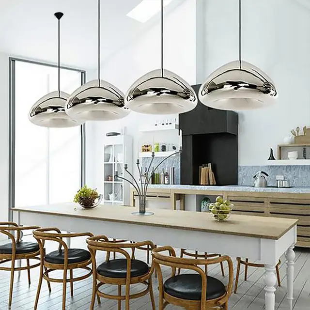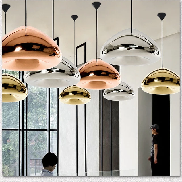 Mangkuk Modern Cermin Lampu Kaca Dipimpin Liontin Cahaya Lampu Void