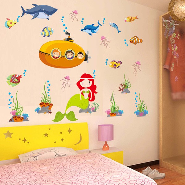 ᗐmaruoxuan Stiker Dinding Kamar Anak Anak Tk Kartun Submarine
