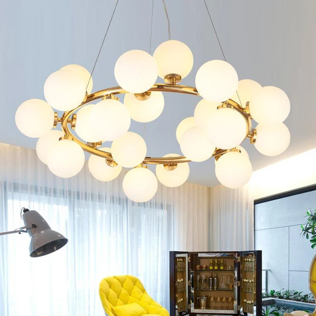 Chandelier Lampu Penerangan Kaca Bulat Memancarkan Cahaya Cincin