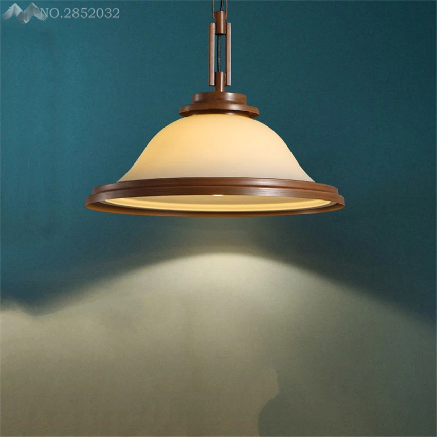 Persegi Bingkai Kayu Liontin Cahaya Bulat Kaca Gantung Lampu Untuk
