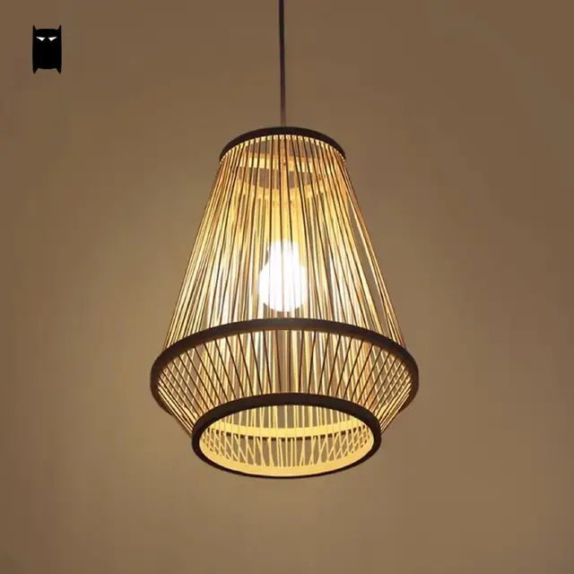 Anyaman Rotan Bambu Kandang Naungan Pendant Lampu Asia Jepang Tatami