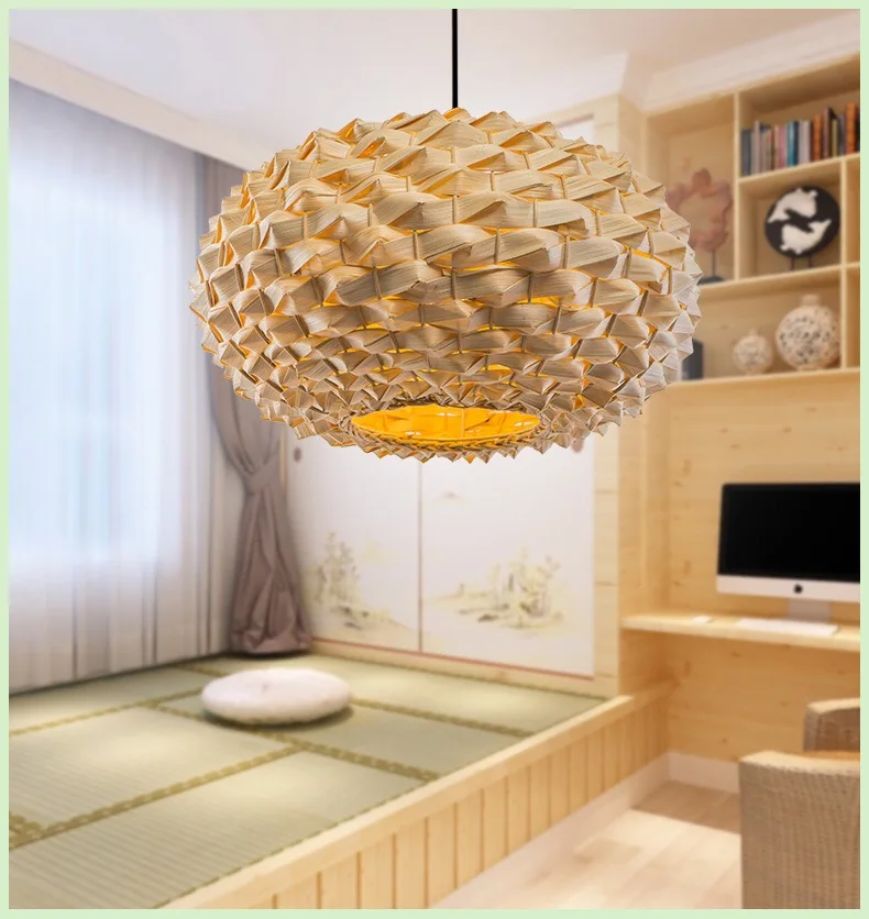 Dia 50 Cm Tangan Merajut Bambu Liontin Lampu Lampu Tatami Gaya