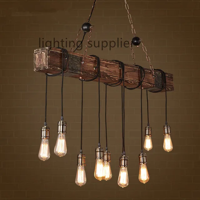 Loft Nordic Retro Kreatif Antik Kayu Ember Lampu Gantung Untuk Ruang