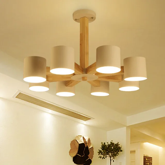 Kreatif Sederhana 3 6 8 Kepala Liontin Lampu Gantung Kayu Ek Kayu