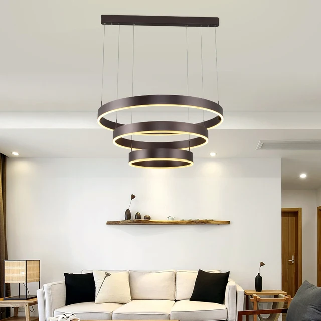 Warna Coklat Modern Cincin Lampu Gantung Led Lampu Untuk Ruang Tamu