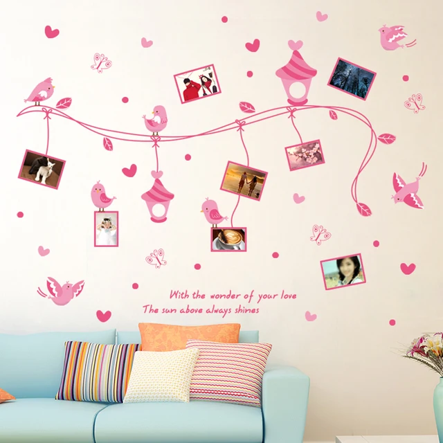 Romantis Bingkai Foto Diy Wall Sticker Removable Lucu Pink Art Decal