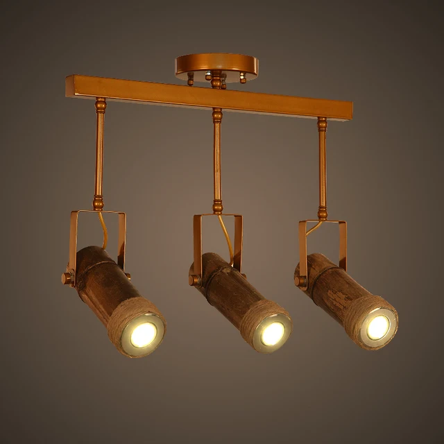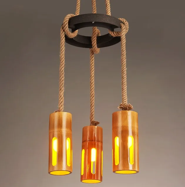 Loft Amerika Tali Dipimpin Lampu Langit Langit Tabung Bambu Kap