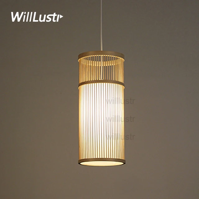 Willlustr Suspensi Cahaya Lampu Gantung Bambu Kayu Handmade