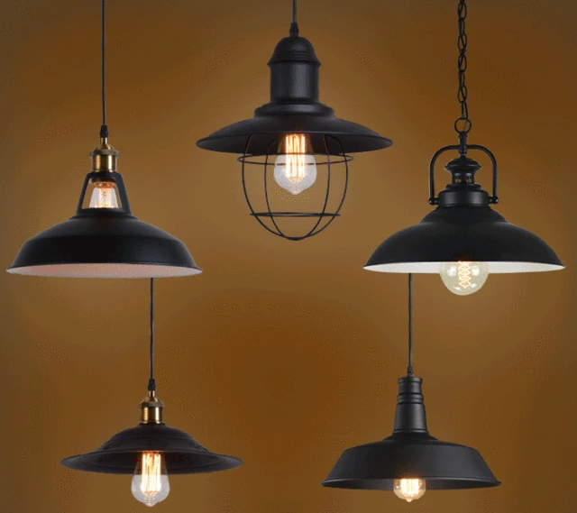 Vintage Pendant Light Loft Lampu Lampu Gantung Hitam Kap Lampu Untuk