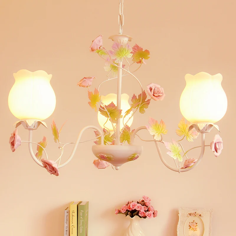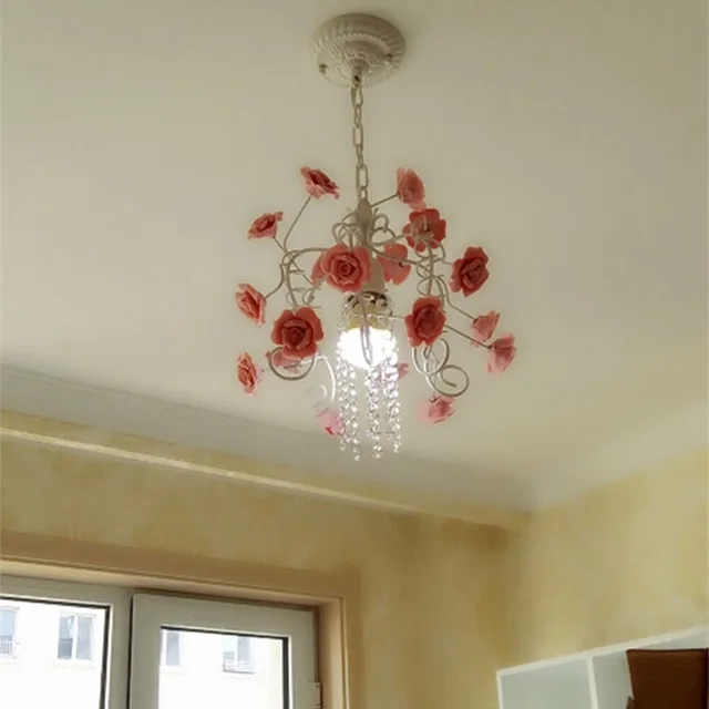 Pastorale Modern Kristal Liontin Lampu Gantung Pink Rose Koridor