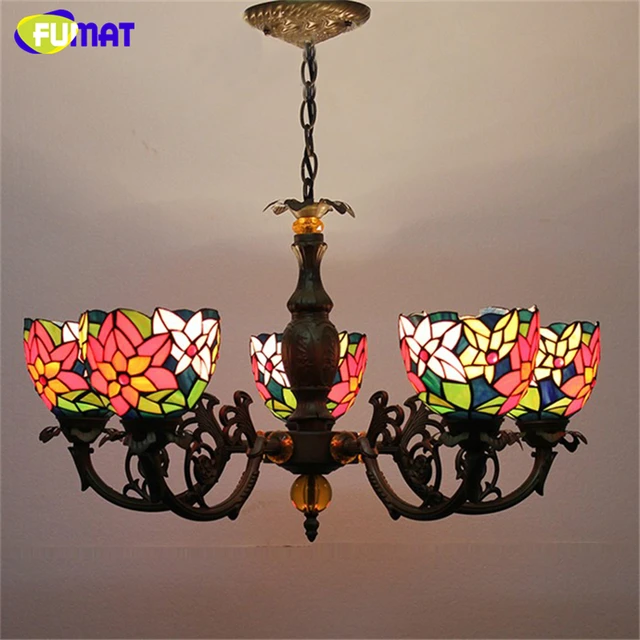 Fumat Kaca Patri Lampu Gantung Antik Gaya Baroque Kaca Tubuh Bunga