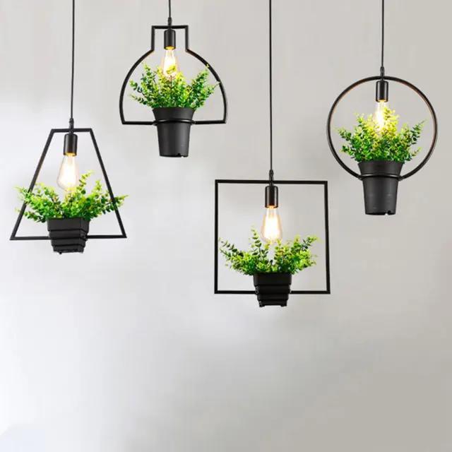 Kreatif Modern Sederhana Pot Tanaman Liontin Lampu Hitam Besi Tempa