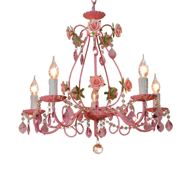Eropa Bunga Merah Muda Kristal Chandelier Lampu Fixture E14 Modern