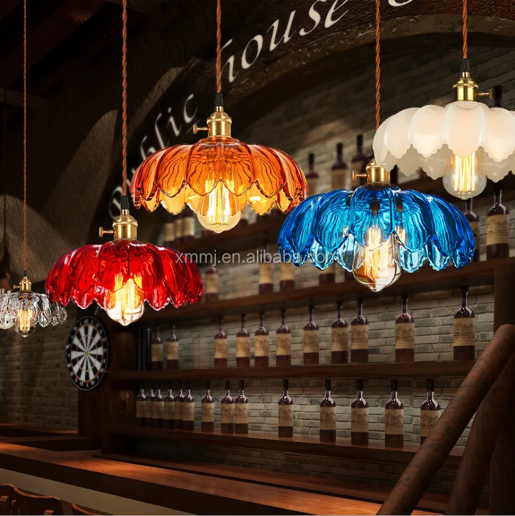 Retro Industri Lampu Gantung E27 Modern Sederhana Bunga Kaca Kap